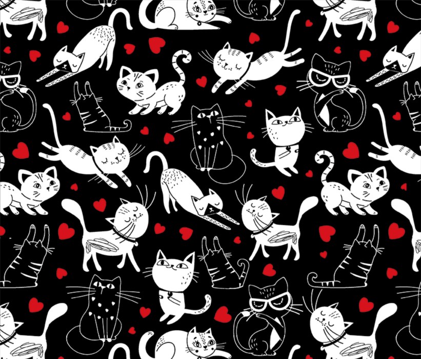 These black and white prints with a pop of red are so adorable! Anyone who has a cat can agree that these guys are true to character. And check out that houndstooth! A closer look reveals a surprise.